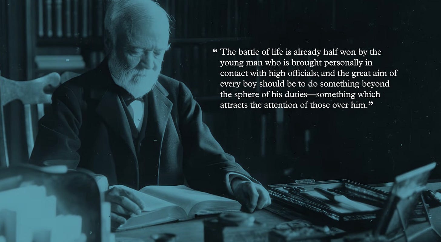 From Carnegie’s story, I saw how a young man can start with almost nothing and still find a path toward something larger — not by luck, but by how he chose to see the world, how he positioned himself, and how he responded to the opportunities that appeared.